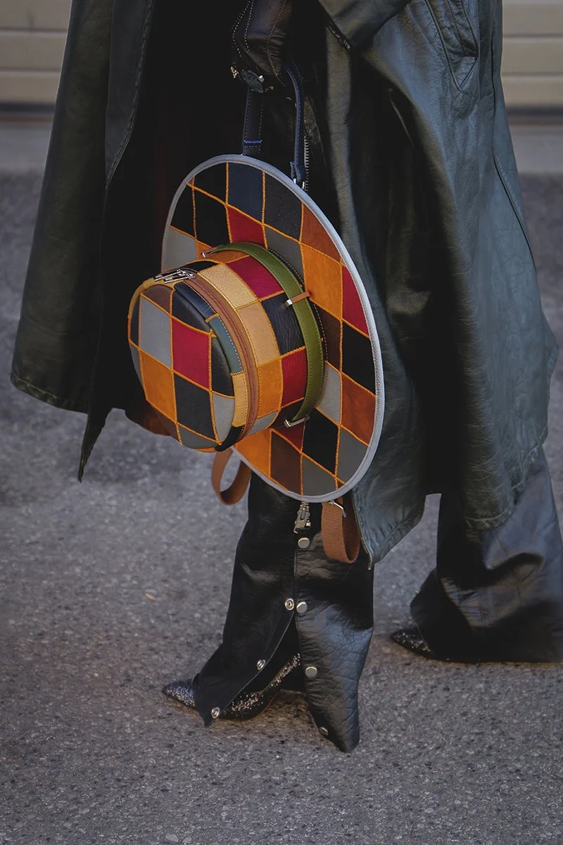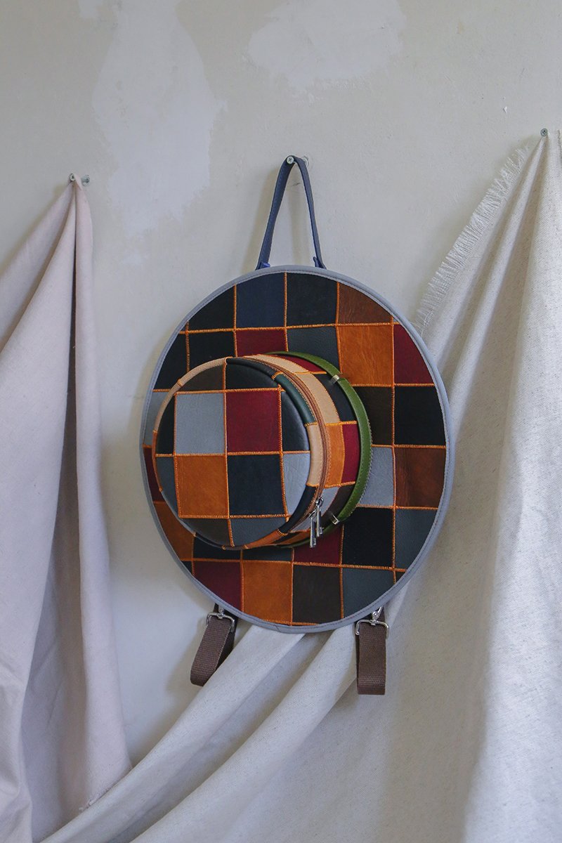 O proizvodu: Mandval PUNCHER 01 ruksak u obliku šešira izrađen tehnikom "Patchwork" najposebniji je takav naš model do sada. Iako je sastavljen od različitih boja (prevladavaju tamne zagasite boje) cjelokupni dojam je taj da tonovi smeđe boje igraju glavnu ulogu. Svaki kvadratić je ručno rezan i spajan koncem u narančastoj boji kako bi dojam smeđih tonova bio još jači. Ruksak se radi po narudžbi i raspored i odabir boja nikada neće biti isti s ciljem da se ukupni dojam ruksaka uvelike ne mijenja.